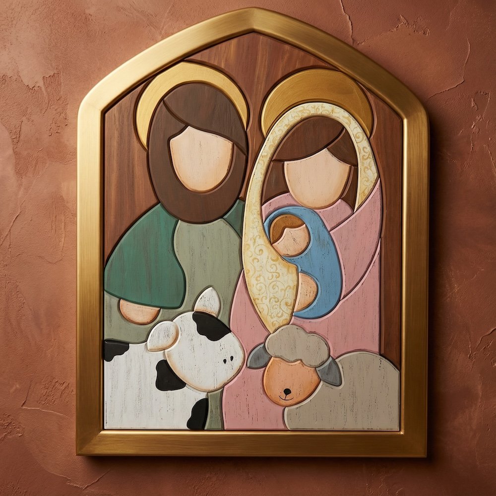 Un hermoso cuadro del nacimiento con dulces animalitos.