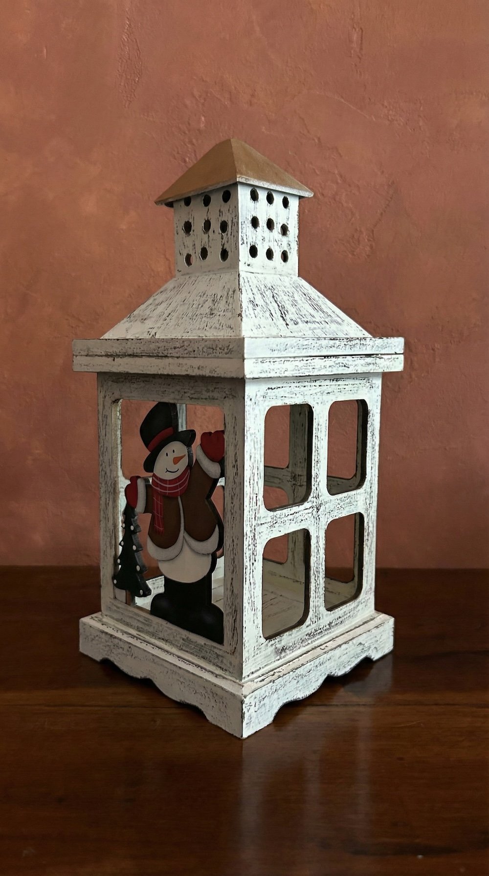 Un divertido farol navideño con luz led en el interior que ilumina la noche navideña.