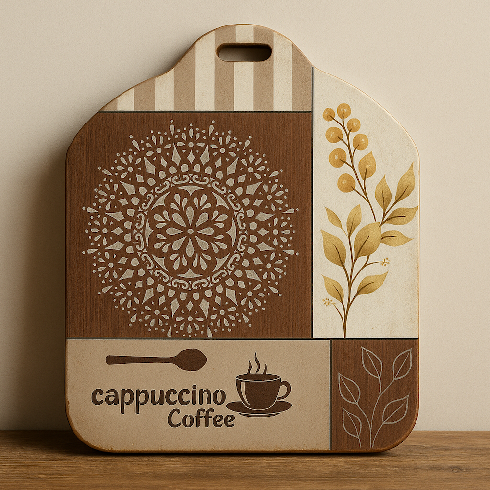 Preciosa tablita decorativa para tu cocina, comedor o parrila. Suave diseño en tonos tierra.